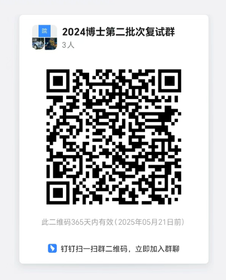 注:看到此办法的考生,请立即加入钉钉群(群号: 69285014927)截止时间为2024年5月24日前。如因考生未按时进群且电话联系不到导致未能按时参加复试,后果自负!