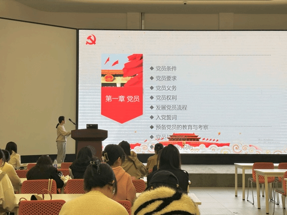 硕士生第三党支部的王泽星同志领学了习近平总书记对宣传思想文化工作作出的重要指示精神,从新时代宣传思想文化事业取得的历史性成就、新时代面临的新形势和新任务以及新时代文化建设的路线图三方面阐述了做好新时代宣传思想工作的重要举措。李沛同志领学了《中国共产党章程》,她从学习党章的必要性及党章的修改和主体结构等方面出发,带领全体党员了解了党章,并在最后分享了自己的感悟与收获。