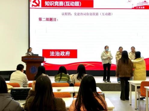 在“红色影片猜剧名”环节,通过选取《小兵张嘎》《长津湖》等红色影视剧的精彩片段,组织党员同志们开展互动竞猜。“党史知识竞猜”环节通过对党的理论知识、政府的重大会议及我国的方针政策设问,加深了党员对党史的理解。“红歌接龙”环节,选取了《歌唱祖国》《团结就是力量》等十余首脍炙人口的红色经典歌曲,党员同志们纷纷踊跃接唱,用嘹亮的歌声重温革命岁月,感悟初心使命。“你划我猜”环节的题目围绕“四个全面”“文化自信”等党建热词展开,不仅提升了党员同志参与的积极性,还在游戏中加深了对这些词语的理解。活动最后,党支部书记彭魁烨同志为获得一、二、三等奖的党员同志颁发奖品,参赛党员精神饱满,整场竞赛高潮迭起,充分展现了基层党组织强大的凝聚力和战斗力。