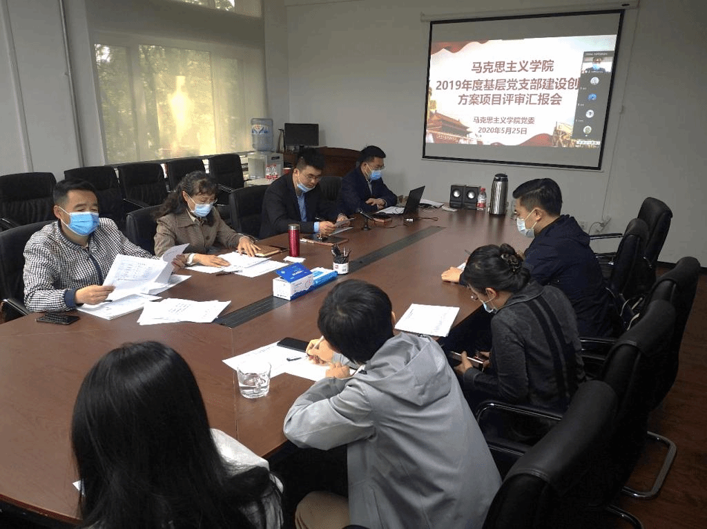 为进一步总结提炼党建工作经验,推动党支部标准化规范化建设,加强基层党组织之间的交流学习,5月25日上午,学院党委在323会议室,召开2019年度基层党支部建设创新方案结项验收评审会。考虑到疫情防控特殊时期,本次结项答辩会议采取线上、线下相结合的方式开展,学院党委书记陈晓晖,党委副书记张新奎,党委组织员胡丰彦以及全体党支部书记、副书记参加会议。