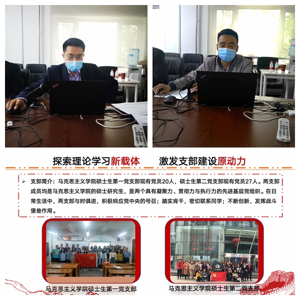 硕士生第一、第二党支部立项的《探索理论学习新载体 激发支部建设原动力》,通过运用“配音秀”“学习强国”“喜马拉雅”APP等理论学习新载体,提高了支部成员学习习近平新时代中国特色社会主义思想的积极性。形成献礼祖国七十周年快闪视频一份、支部成员理论学习心得体会若干、创意配音作品若干、“品读经典思想”朗诵作品若干,成立理论宣讲团与组织拍摄快闪视频等方式,大力激发研究生党支部建设原动力。